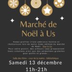 Marché de Noël samedi 13 décembre 2025 Posted on 21 mai 202525 novembre 2025 by Delphine QUILLENT La mairie et le foyer rural d'us organisent la deuxième édition du marché de Noël. Plus
