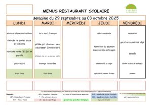 Menus restaurant scolaire et centre de loisirs communal