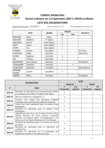 Liste des délibérations CM 09-2025